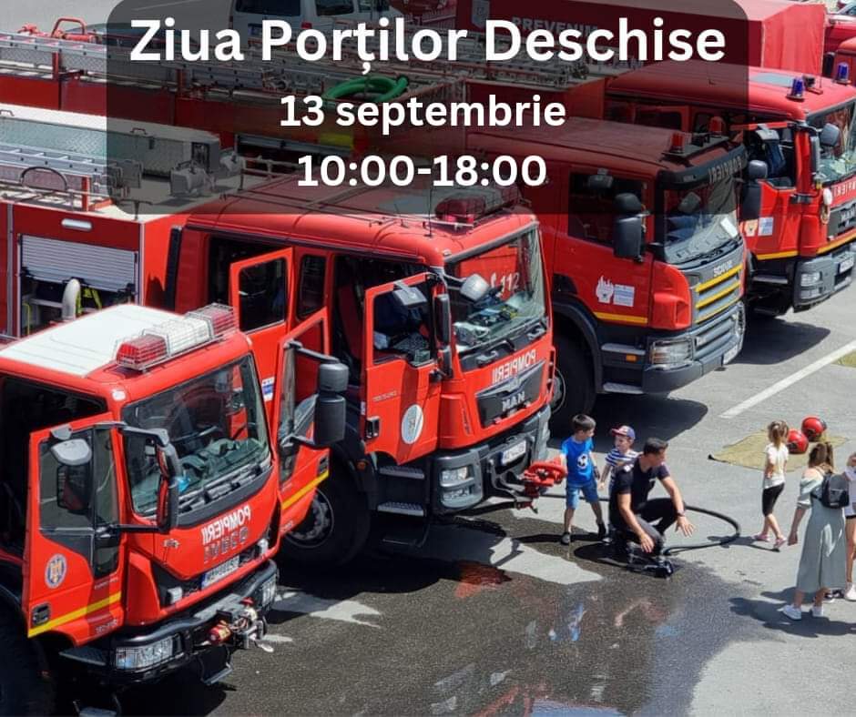 Cu această ocazie miercuri, 13 septembrie, În intervalul orar 10:00 – 18:00, în toate subunităţile Inspectoratului pentru Situații de Urgență “Basarab I” al județului Dâmboviţa (Detaşamentul Târgovişte, Garda Voineşti, Detaşamentul Pucioasa, Garda Fieni, Detaşamentul Moreni, Garda Corneşti, Detaşamentul Titu, Garda Răcari, Garda Potlogi, Detaşamentul Găeşti, Garda Vişina), va fi organizată „ZIUA PORŢILOR DESCHISE”, prilej cu care îi invităm pe cetăţenii dâmboviţeni să viziteze aceste subunităţi de intervenţie, unde vor vedea tehnica şi echipamentele utilizate pentru diferite tipuri de intervenţii.