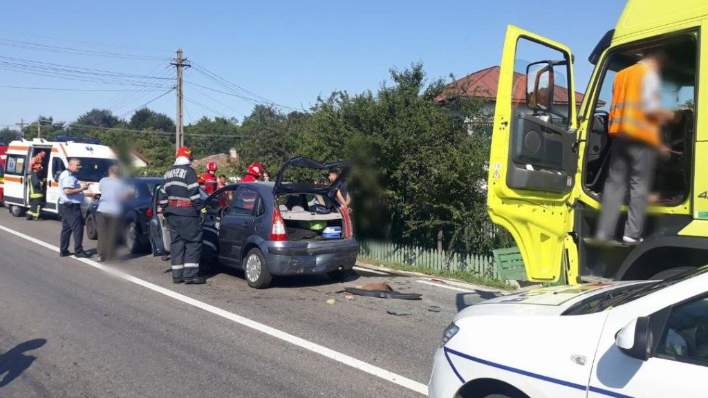 Un tir nu a păstrat distanţa în mers şi a intrat în coliziune  cu alte două  autoturisme.  În  urma impactului a rezultat şin o victimă, care a fost transportată la spital.  La faţa locului se află poliţia,pompierii i ambulanţa.