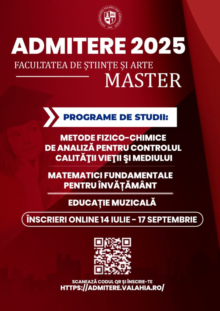 Facultatea de Științe și Arte din cadrul Universității „Valahia” din Târgoviște și-a deschis porțile pentru admiterea 2025, punând la dispoziția tinerilor o ofertă educațională modernă, orientată spre viitor.