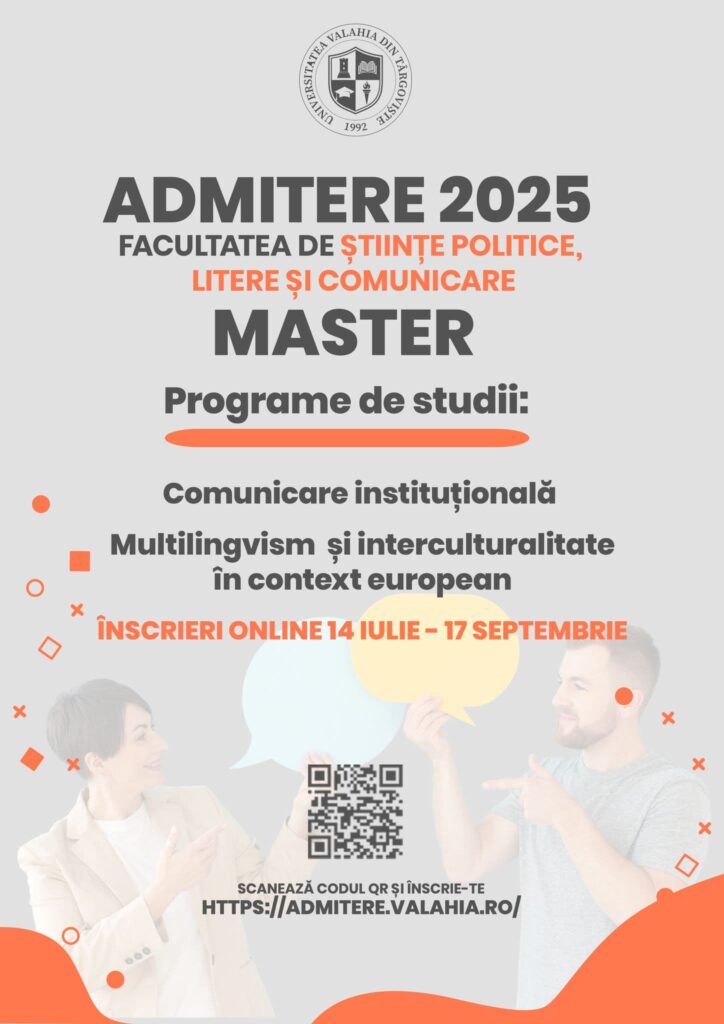Tinerii pasionați de litere, comunicare și jurnalism sunt invitați să-și construiască viitorul academic la Facultatea de Științe Politice, Litere și Comunicare din cadrul Universității „Valahia” din Târgoviște.