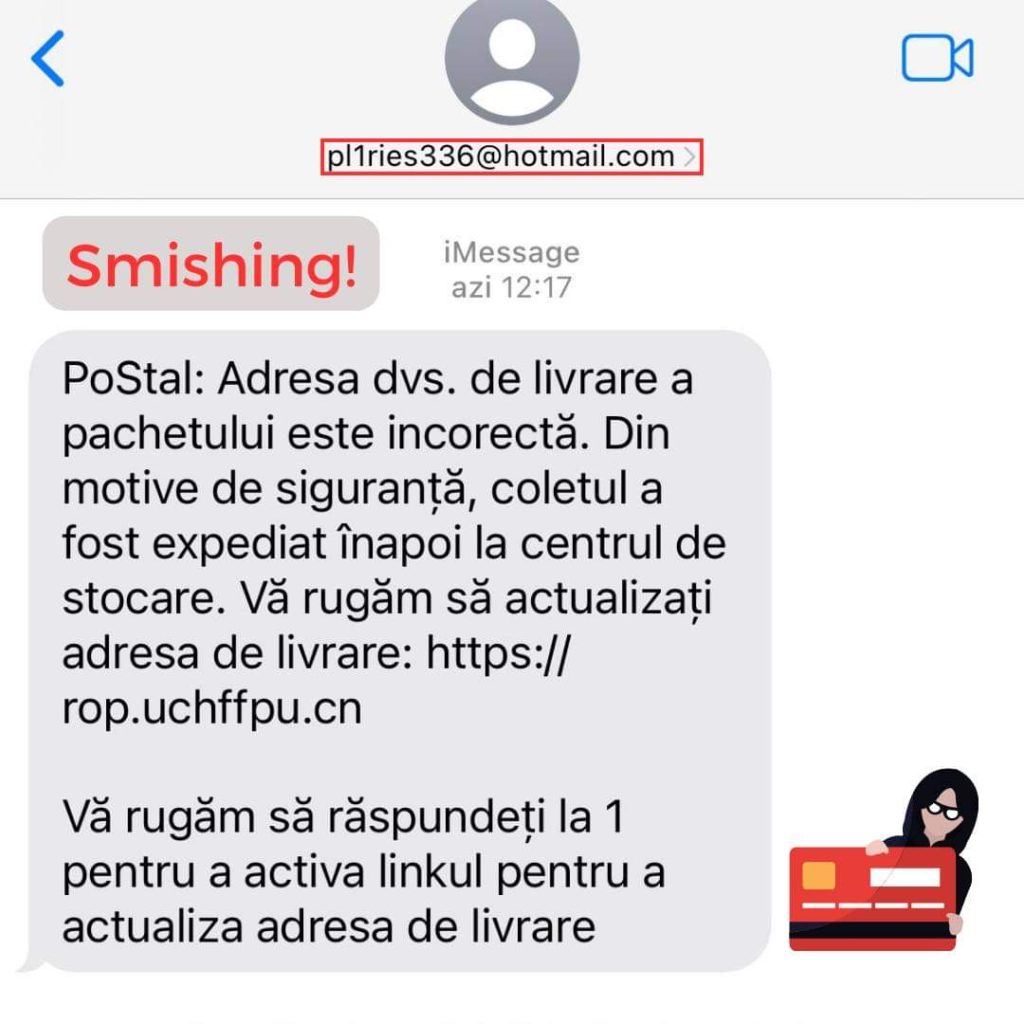 Alertă! Tentativă de fraudă propagată prin SMS,  utilizatori din România sunt vizați de o campanie de tip Smishing. Tentativă de fraudă propagată prin SMS se folosește de scenariul ‘ai un colet’ pentru a atrage curiozitatea potențialelor victime să acceseze un link malițios. Mai departe, utilizatorul este informat că va fi nevoie să-și actualizeze o serie de date, pentru a-i fi livrat în cele din urmă presupusul colet.