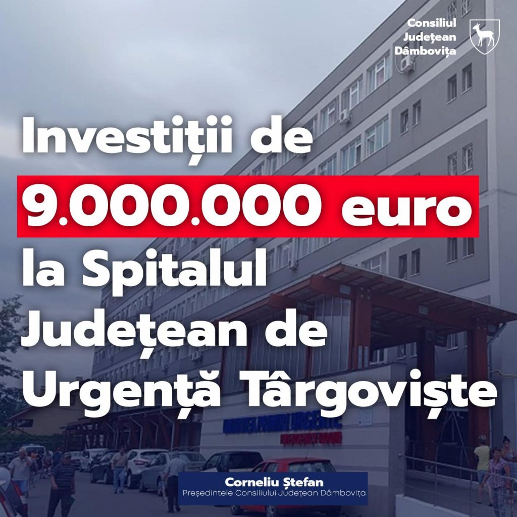 Spitalul Județean de Urgență Târgoviște (SJUT) a semnat contractul de finanțare pentru proiectul „Consolidarea capacității de gestionare a crizei sanitare COVID-19 în cadrul Spitalului Județean de Urgență Târgoviște”, SMIS 140881, derulat prin Programul Operațional Infrastructură Mare (POIM) 2014 – 2020. Prin acest proiect, SJUT va achiziționa echipamente și consumabile medicale, echipamente de protecție medicală și biocide, acestea fiind materiale de bază pentru gestionarea presiunii pe care epidemia de COVID-19 o exercită asupra sistemului medical.