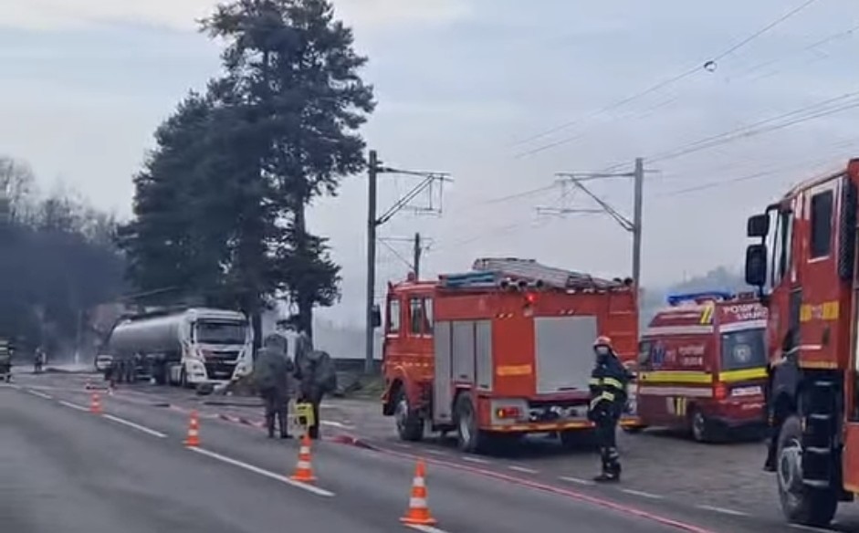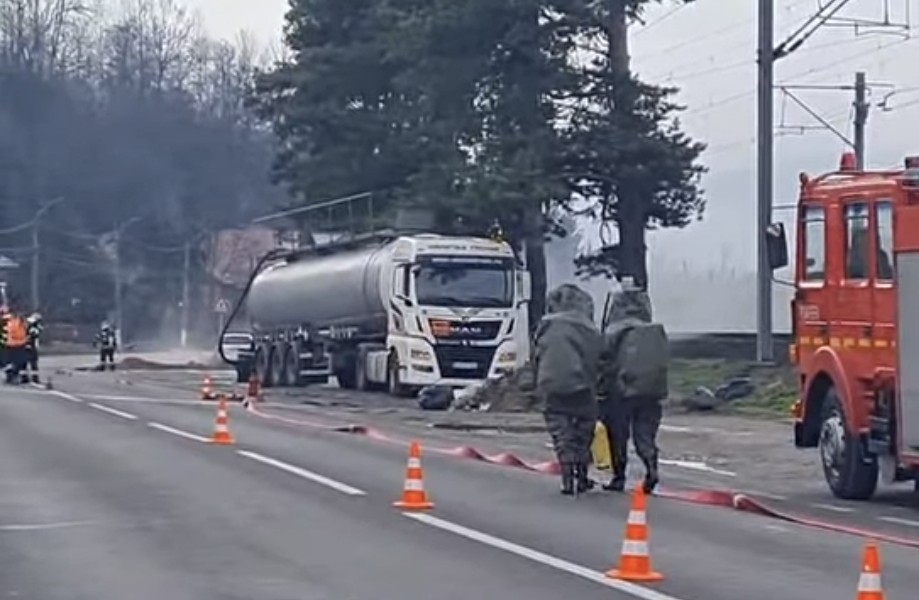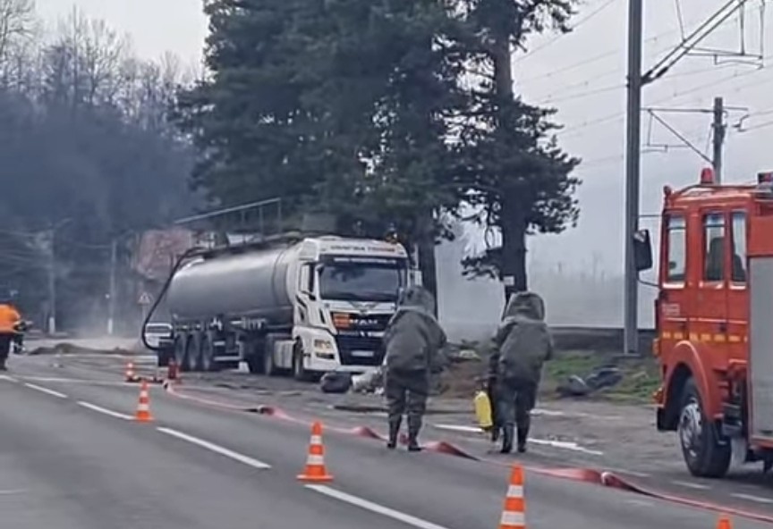 Atentie! Circulația rutieră este momentan blocată pe DN1, la km 108+500, în zona localității Comarnic, județul Prahova, din cauza defecțiunii unei cisterne care transportă acid sulfuric. Intervenția echipelor de pompieri este în curs pentru a curăța carosabilul în zona afectată.