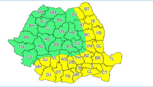 ATENȚIONARE METEOROLOGICĂ, COD GALBEN de CANICULĂ, potrivit ANMH care a actualizat atenționările pentru întreaga țară.