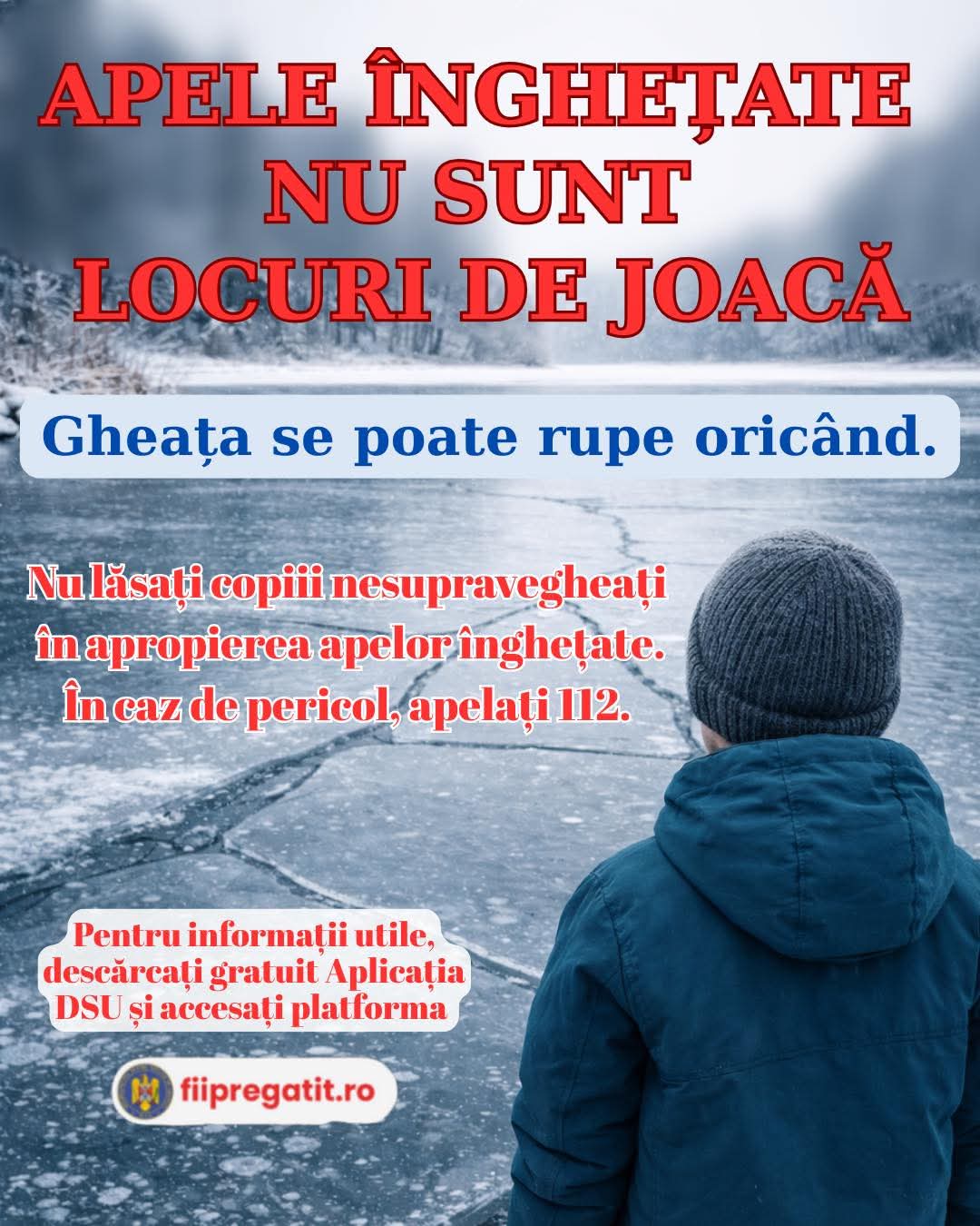 Specialiștii în situații de urgență subliniază că gheața se poate rupe în orice moment, indiferent de grosimea aparentă, iar un singur pas greșit poate avea consecințe dramatice. În fiecare an, astfel de situații duc la accidente grave, în special în rândul copiilor și adolescenților.