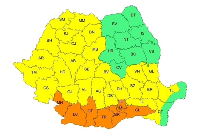Avertizarea este valabilă în contextul unui val de căldură național, care se va intensifica în zilele următoare, fiind posibile și coduri portocalii sau roșii în unele zone.