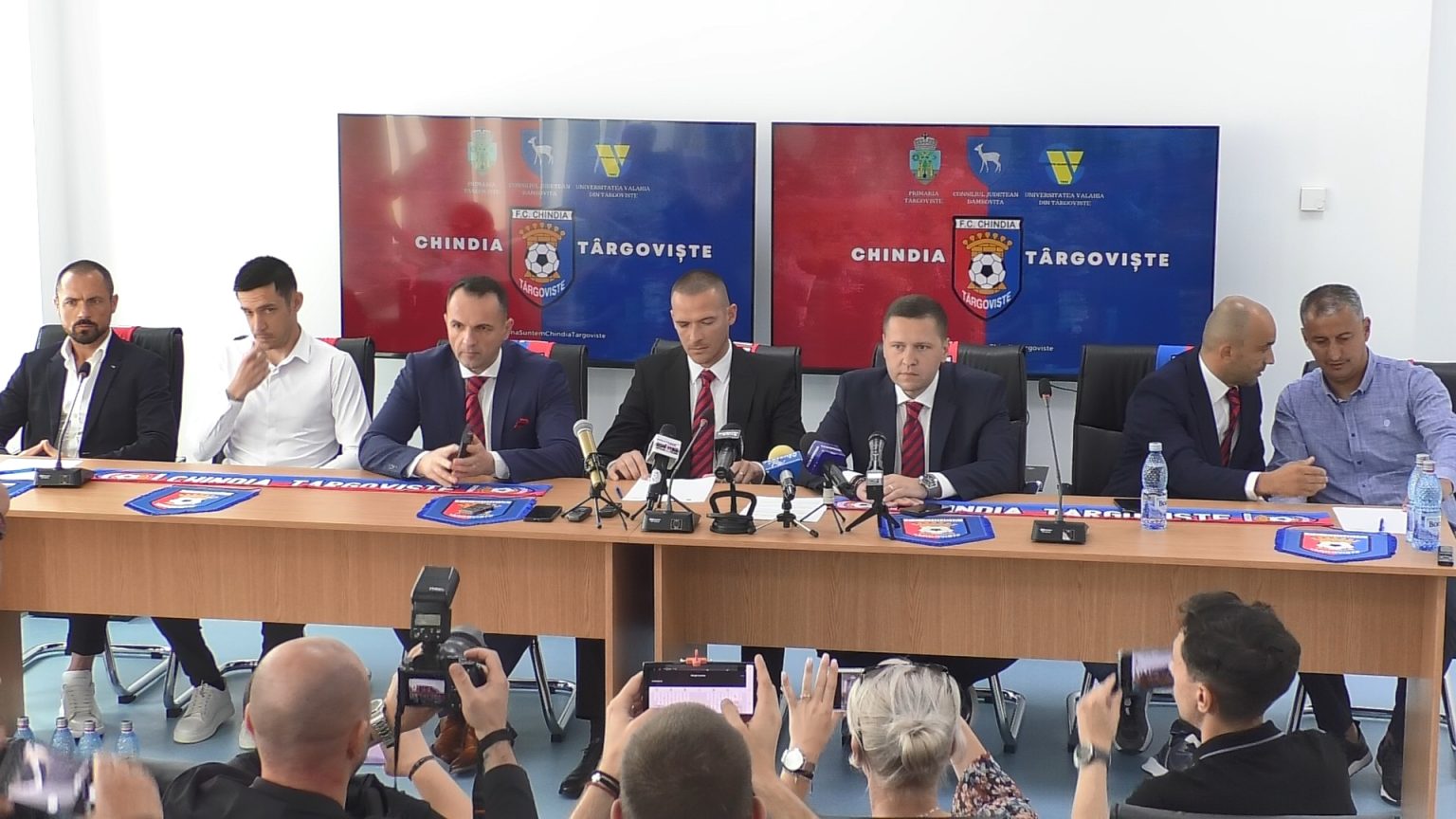 Corneliu Ştefan, președintele CJ Dâmboviţa, a susținut o conferință de presă la stadionul ”Eugen Popescu” din Târgoviște, în care au fost prezentați cei cu care Chindia ar trebui să promoveze în liga 1.Prezet a fost și primarul municipiului Târgoviște, Cristian Daniel Stan.