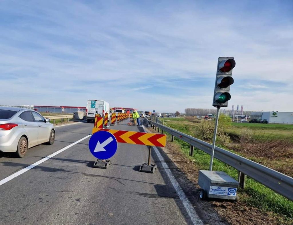 Circulație cu restricții pe DN 69 Timișoara – Arad, pentru executarea lucrărilor de consolidare la podul peste pârâul Bega Veche, pe drumul național spre Orțișoara, după intersecția DN cu drumul județean spre Sânandrei, s-a montat semafor temporar.