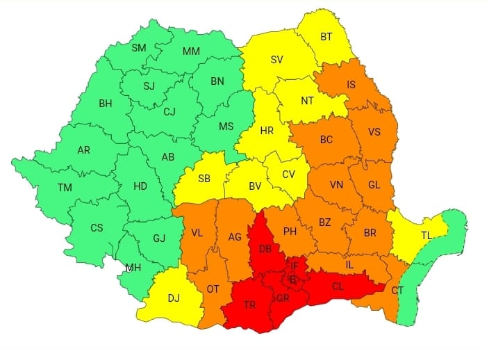 Administrația Națională de Meteorologie a emis o avertizare COD ROȘU de caniculă pentru județul Dâmbovița, valabilă de duminică, 27 iulie, ora 10:00, până luni, 28 iulie, ora 10:00. Temperaturile maxime vor atinge 39…41°C, iar disconfortul termic va fi deosebit de accentuat, indicele temperatură-umezeală (ITU) depășind pragul critic de 80 de unități. Minimele nocturne vor fi de 20…23°C, marcând o noapte tropicală.