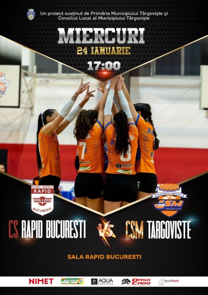 CSM Târgoviște – Rapid București, astăzi, 24 ianuarie 2024, cele mai bune echipe de volei se întâlnesc pentru o bătălie de neuitat!