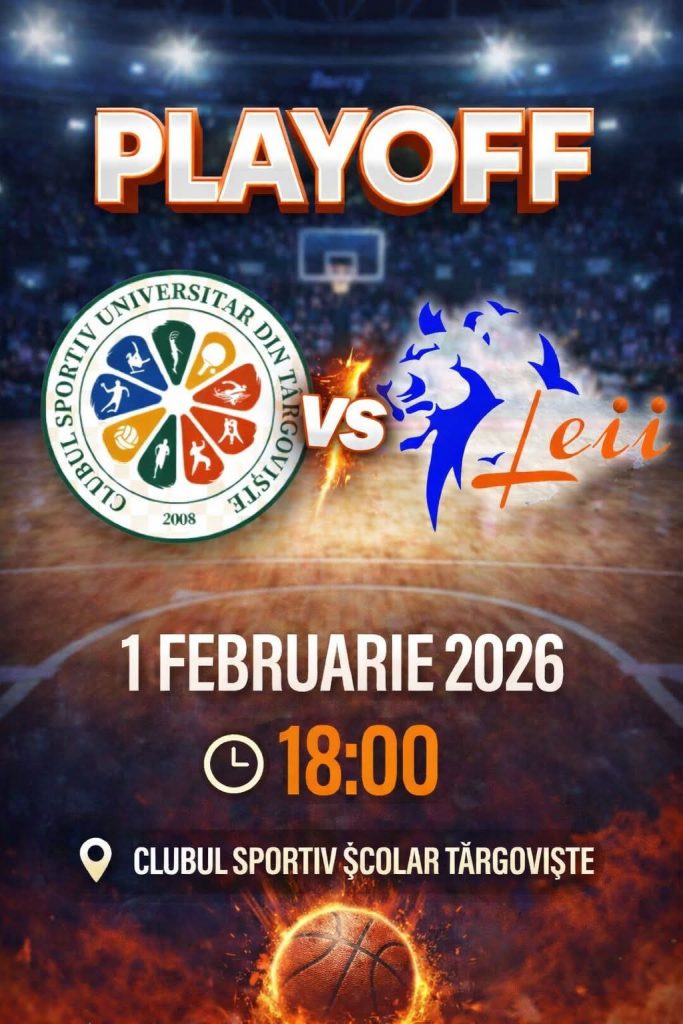 CSU Târgoviște primește vizita echipei ABC Leii București în etapa a 5-a a Playoff-ului Ligii 1 de baschet masculin. Partida se va desfășura pe 1 februarie 2026, de la ora 18:00, în Sala Ioan Valerian.