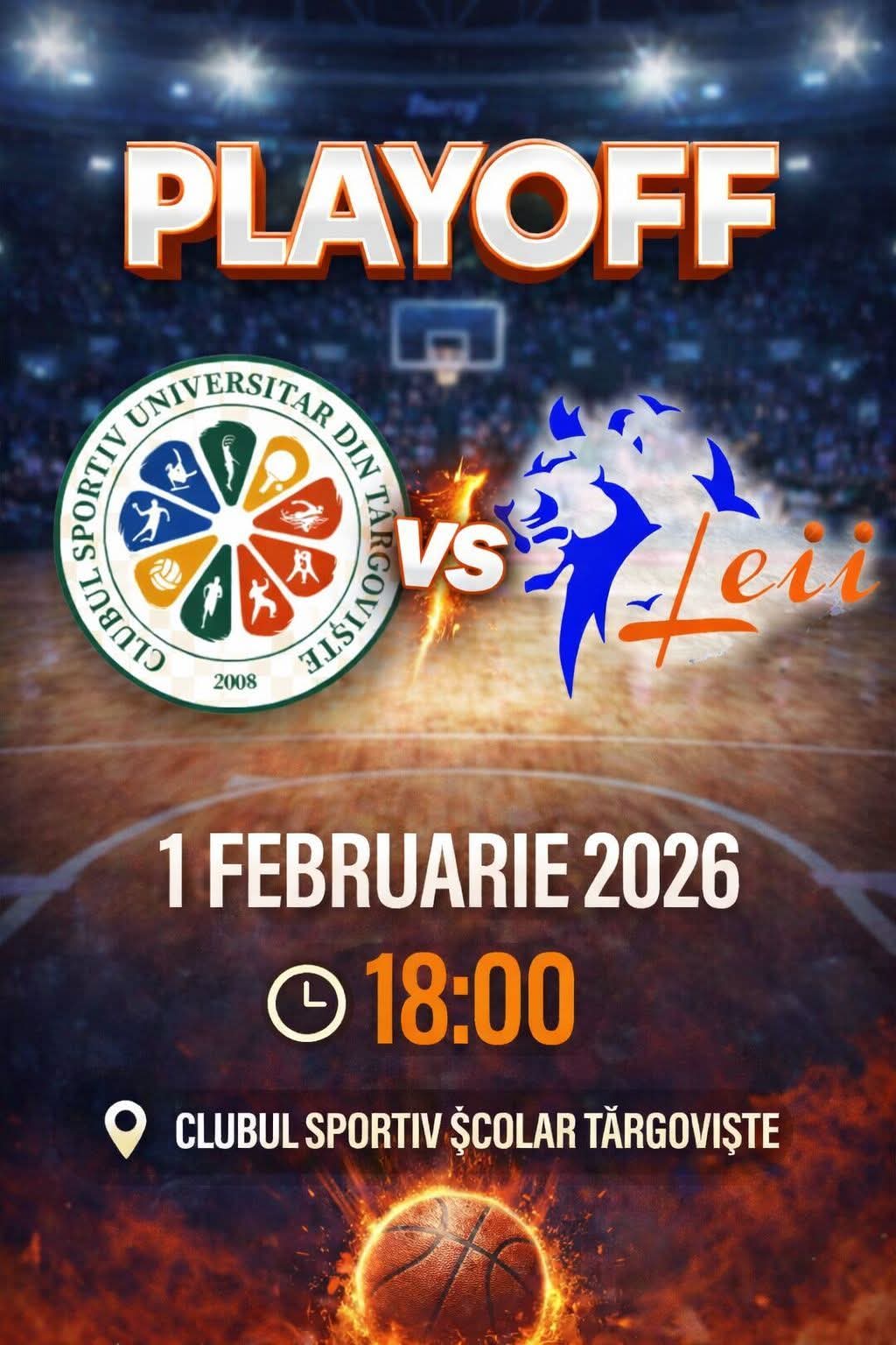 CSU Târgoviște primește vizita echipei ABC Leii București în etapa a 5-a a Playoff-ului Ligii 1 de baschet masculin. Partida se va desfășura pe 1 februarie 2026, de la ora 18:00, în Sala Ioan Valerian.