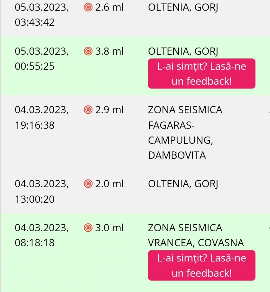 În ziua de 04 Martie 2023 la ora 08:18:18 (ora locală a României) s-a produs în ZONA SEISMICA VRANCEA, COVASNA un cutremur slab cu magnitudinea ml 3.0, la adâncimea de 61km.