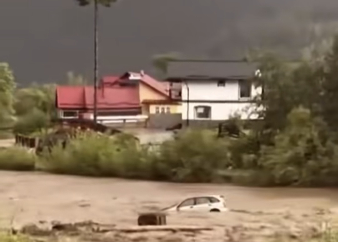 Ploile torențiale au generat viituri puternice care au măturat totul în cale, iar mai multe mașini au fost luate de apă.