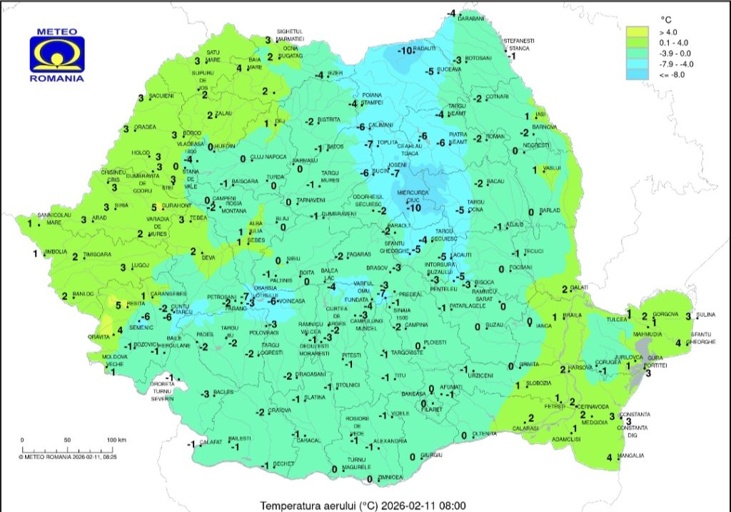 A nins în aversă pe parcursul nopții, iar orașul s-a trezit sub un strat proaspăt de zăpadă. La primele ore ale dimineții, termometrele indică -1°C, iar atmosfera este specifică unei zile de februarie veritabile.