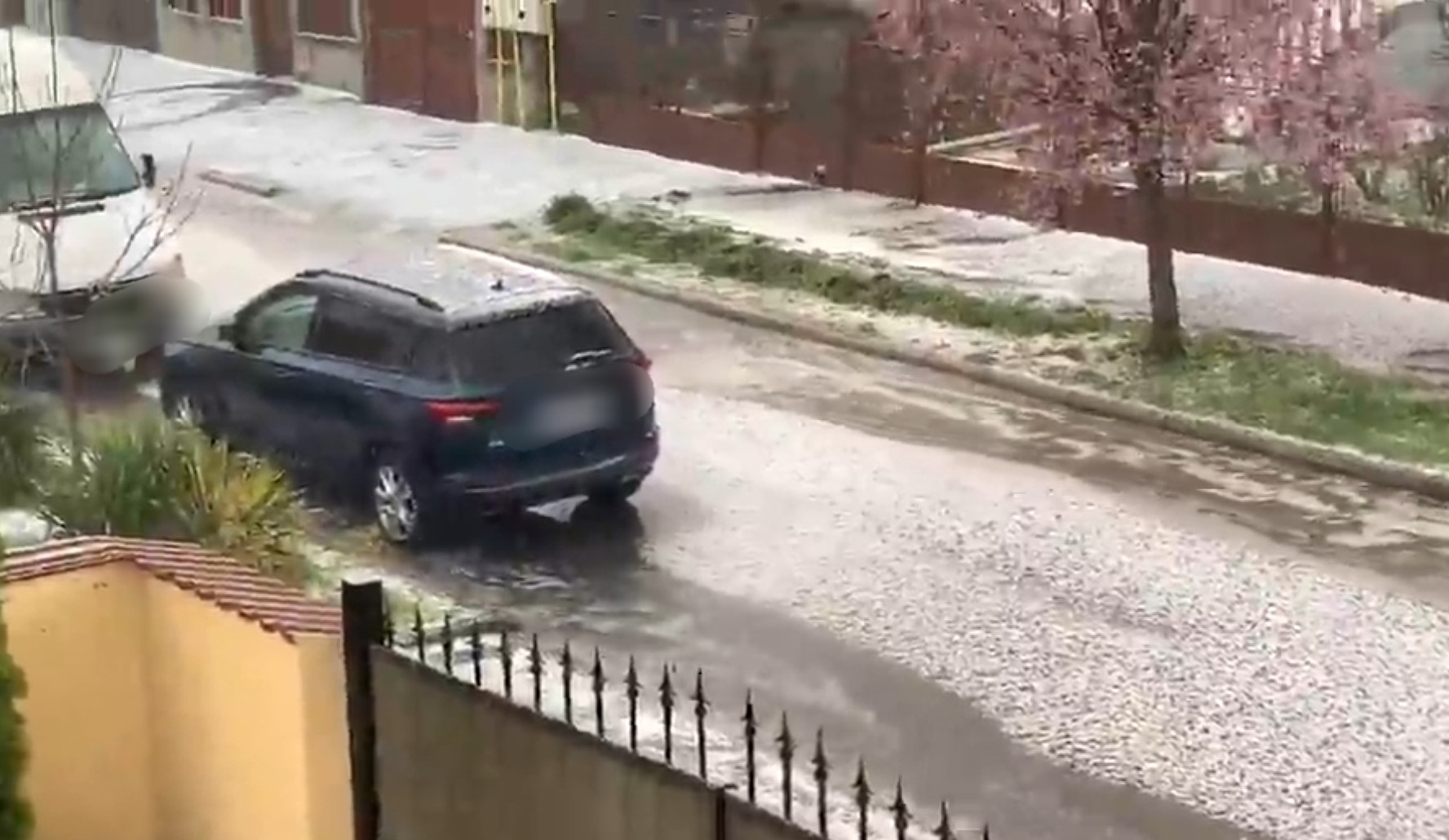 La Ocna Mureș în timpul fenomenului meteo, o stradă s-a umplut în scurt timp de grindină.