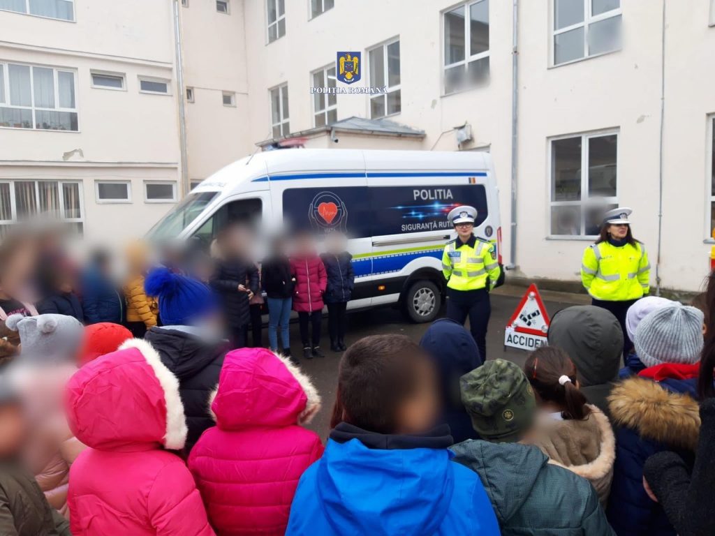 Educație rutieră, viața are prioritate, la data de 13 ianuarie a.c, polițiștii din cadrul Biroului Siguranță Școlară, cu sprijinul polițiștilor din cadrul Serviciului Rutier, au desfășurat activități de prevenire a accidentelor rutiere în rândul elevilor.