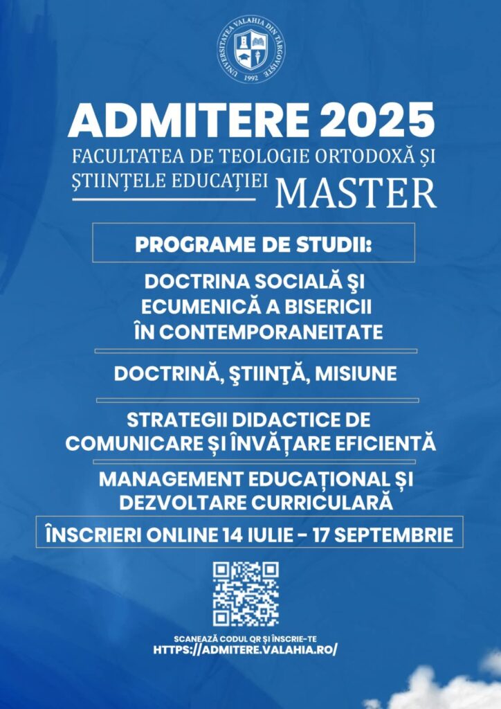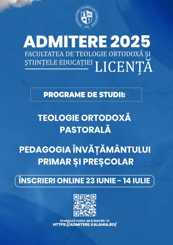 Universitatea „Valahia” din Târgoviște deschide porțile viitorilor studenți care doresc să îmbine formarea intelectuală cu dezvoltarea spirituală și pedagogică, în cadrul Facultății de Teologie Ortodoxă și Științele Educației.