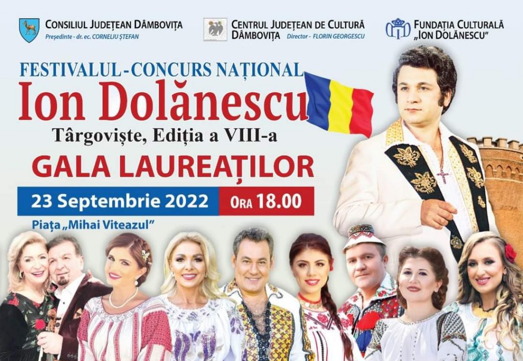 Festivalul – Concurs Naţional „Ion Dolănescu”, ediția a VIII-a, Consiliul Judeţean Dâmboviţa, prin Centrul Judeţean de Cultură Dâmboviţa, alături de Fundaţia Culturală Ion Dolănescu, vă invită în perioada 22-23 septembrie 2022, în Piața Mihai Viteazul din Târgoviște, la un eveniment cultural de marcă, un regal al cântecului popular românesc.
