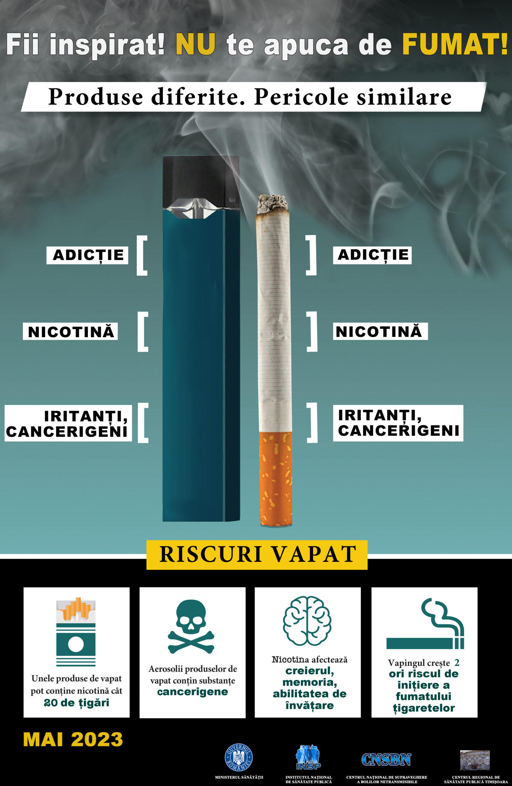 În acest context, în luna mai a anului 2023 vom derula, la nivel național, campania privind prevenția consumului de tutun, care are ca temă „Prevenirea consumului de țigări și a utilizării de dispozitive electronice (HEETS și ENDS) în rândul adolescenților”.