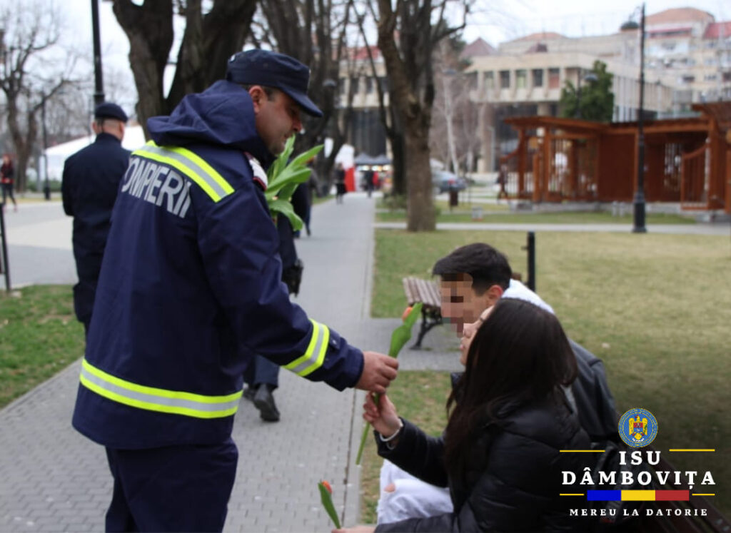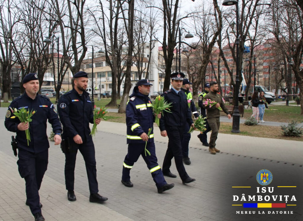 Reprezentanții structurilor teritoriale ale Ministerului Afacerilor Interne din județul Dâmbovița (Inspectoratul de Poliție Județean Dâmbovița, Inspectoratul de Jandarmi Județean Dâmbovița și Inspectoratul pentru Situații de Urgență “Basarab I” al Județului Dâmbovița) au oferit flori doamnelor și domnișoarelor pe care le-au întâlnit în zona centrală din municipiul Târgoviște.
