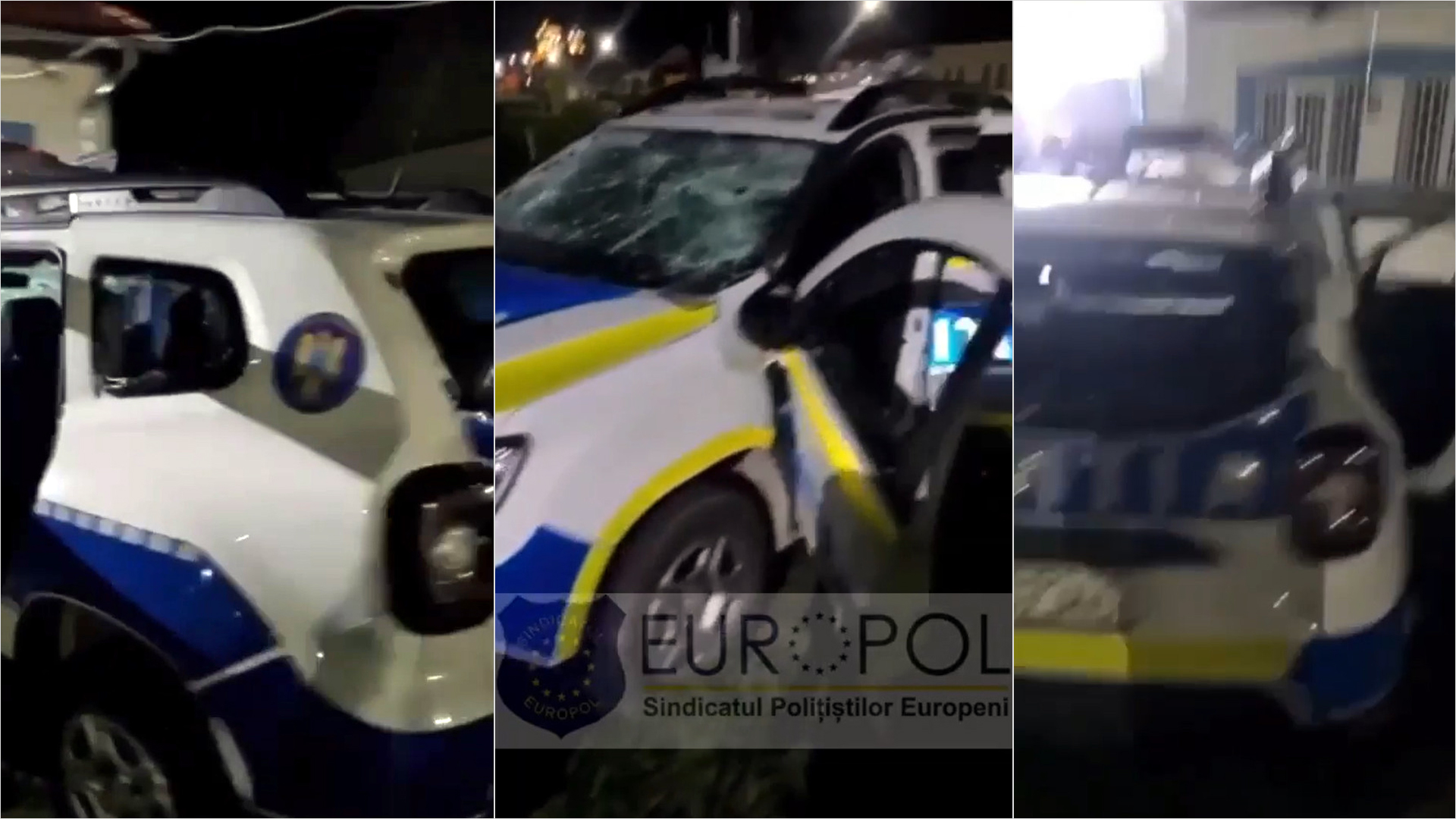 Imagini șocante: O autospecială de poliție a fost distrusă cu ciocanul de un cetățean care nu suportă poliția, imaginile au fost făcute publice de Sindicatul Europol.