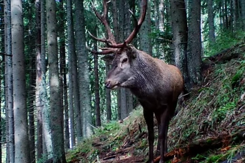 În mijlocul unei păduri din Parcul Național Călimani, un cerb a fost surprins în timp ce își demonstra abilitățile de boncănit în fața unei camere instalate de către silvicultori. Perioada de împerechere a cerbilor, cunoscută sub numele de boncănitul cerbilor, este în plină desfășurare în această perioadă a anului.
