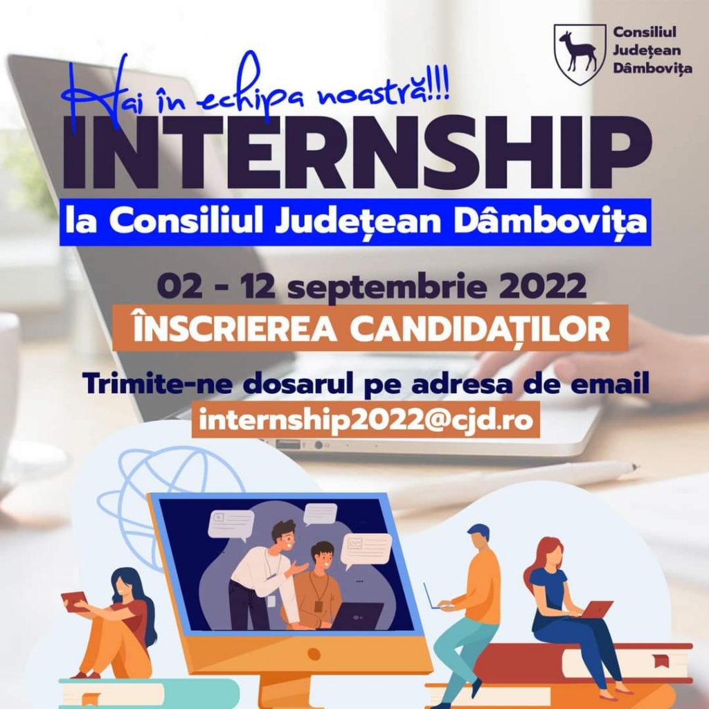 În perioada 2-12 septembrie se fac înscrierilor la Programul Internship 2022 în cadrul CJ Dâmbovița, pentru al doilea an consecutiv, tinerii care vor să se implice în viața județului, dar, în același timp, să dobândescă experienţă în cea mai importantă administrație publică a județului, ConsiliulJudețean Dâmbovița, pot transmite, documentele necesare participării la program: