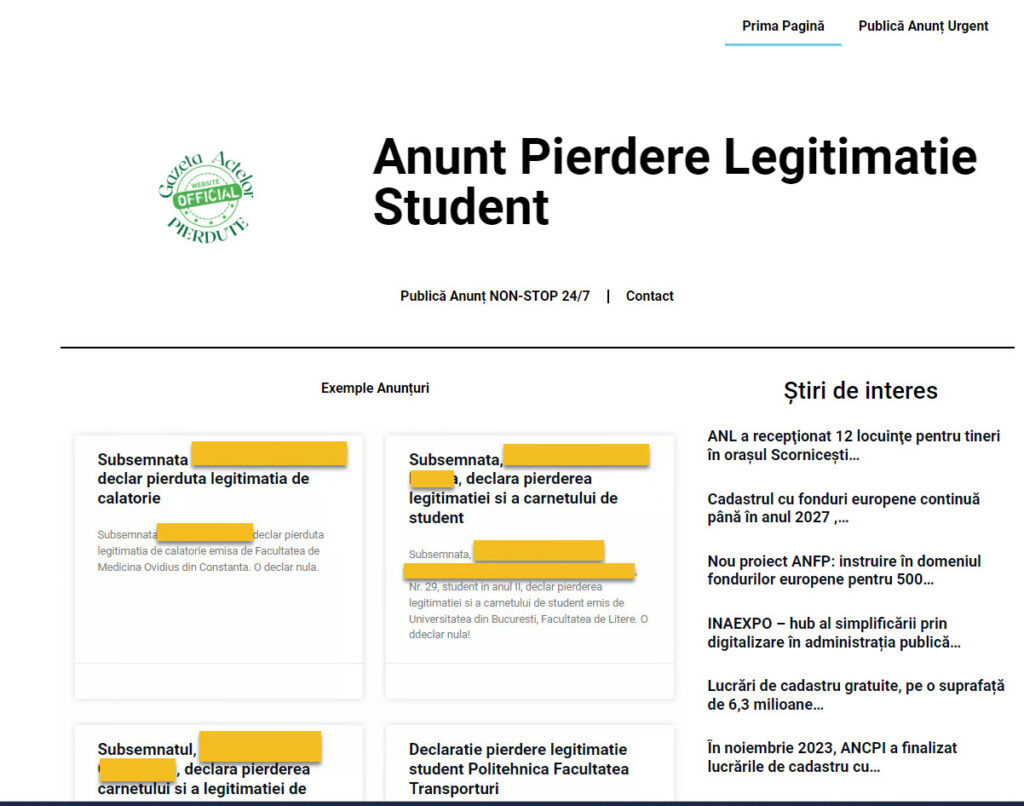 Informații utile: anunt pierdere legitimatie student