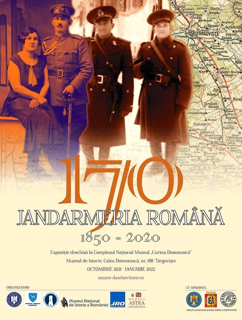 „Jandarmeria Română 1850 – 2020”, o expoziție inedită, Muzeul Național de Istorie a României, în parteneriat cu Inspectoratul General al Jandarmeriei Române și Consiliul Județean Dâmbovița, prin Complexul Național Muzeal „Curtea Domnească” Târgoviște, anunță deschiderea expoziției itinerante, la sediul Muzeului de Istorie din Târgoviște, situat pe Calea Domnească, nr. 189. Vernisajul va avea loc marți, 12 octombrie 2021, la ora 13:00.