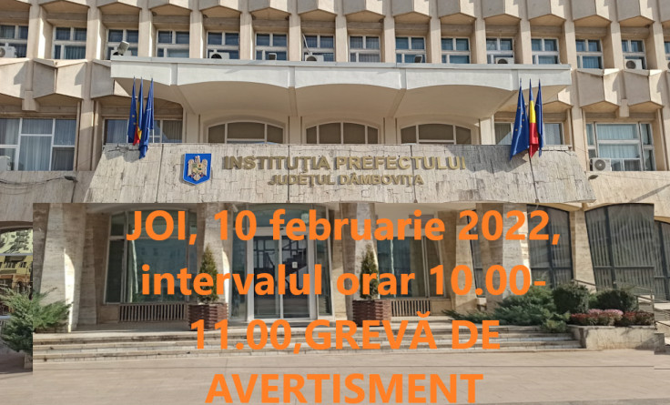 Sindicatul ,,Egalitatea” al Funcționarilor Publici și Personalului Contractual din Administrația Publică, reprezentând Instituțiile Prefectului din 33 de județe, declară grevă de avertisment.