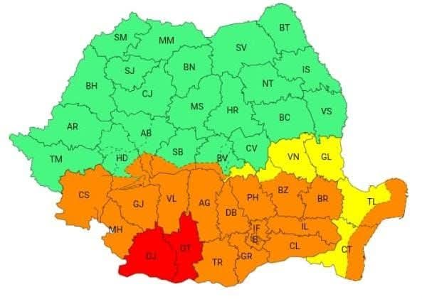 Zone afectate: Caraș-Severin, Mehedinți, Dolj, Olt, Vâlcea, Gorj, Teleorman, Argeș, Dâmbovița și Prahova