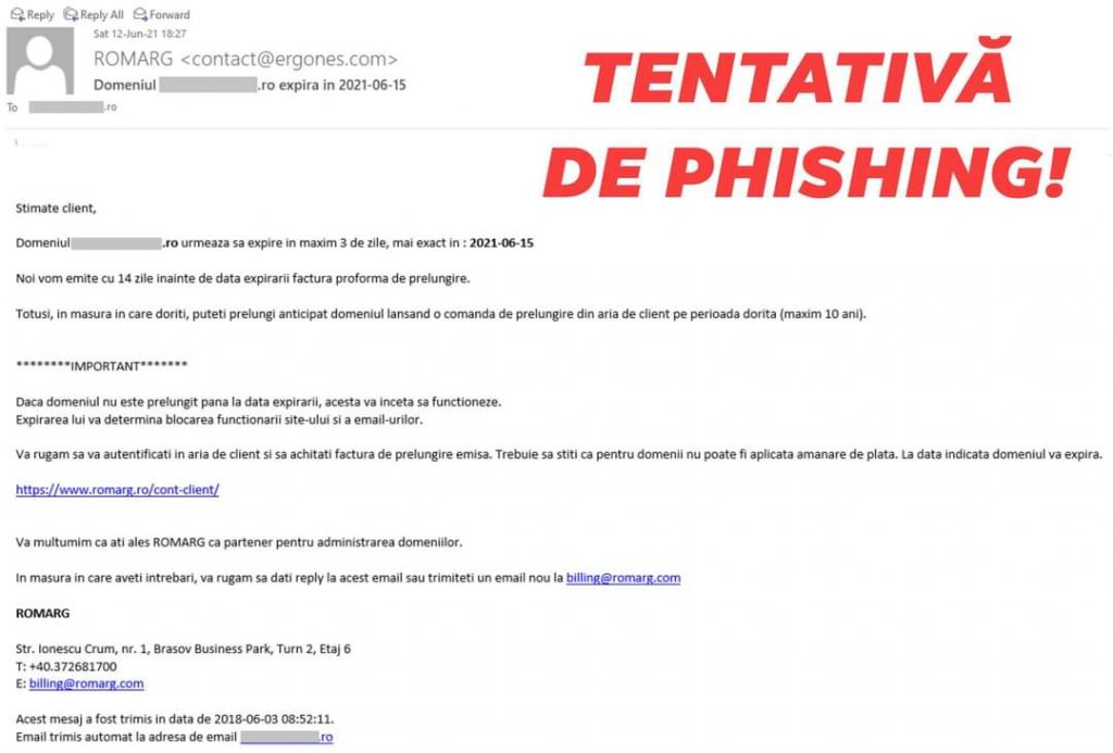 În comunicatul transmis către presă se face referire și la atacurile de phishing care folosesc imaginea ROMARG: anul acesta creșterea a fost de aproximativ 200% față de 2021. Doar în perioada 17 septembrie – 24 octombrie, un număr de 20.148.674 emailuri de tip spam/phishing sau virus au fost blocate de soluțiile de securitate implementate de către companie, în contextul în care suma totală a emailurilor procesate de servere în aceeași perioadă a fost de 35.760.371 emailuri.’