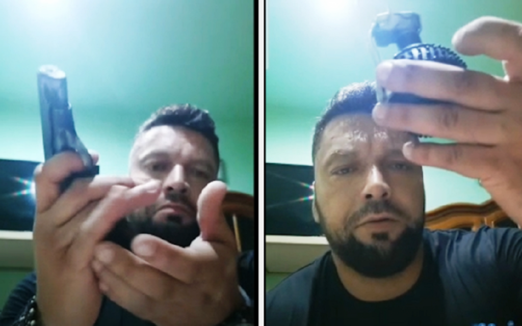 Interlopul Dragoş Turcu, este cel care îi ameninţa pe oamenii legii şi pe şeful IPJ Dâmboviţa cu moartea. Grenada şi pistolul cu care s-a filmat într-un clip au fost găsite îngropate în curtea unei unui bărbat, rudă cu individul.