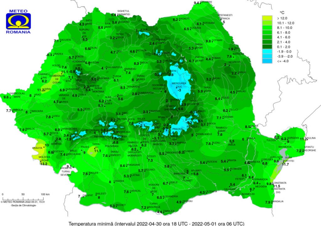 Luni, 2 mai 2022, vremea potrivit ANM, va fi în continuare frumoasă, cu temperaturi apropiate de normalul acestei perioade.