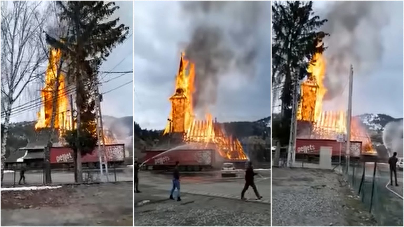Mare necaz, Biserica de lemn din Borsa a luat foc, astăzi, în ziua de Florii, incendiul este foarte puternic, conform imaginilor postate pe retelele de socializare.