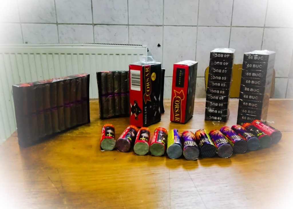 În urma verificărilor, asupra bărbatului au fost găsite peste 1000 de petarde și artificii.