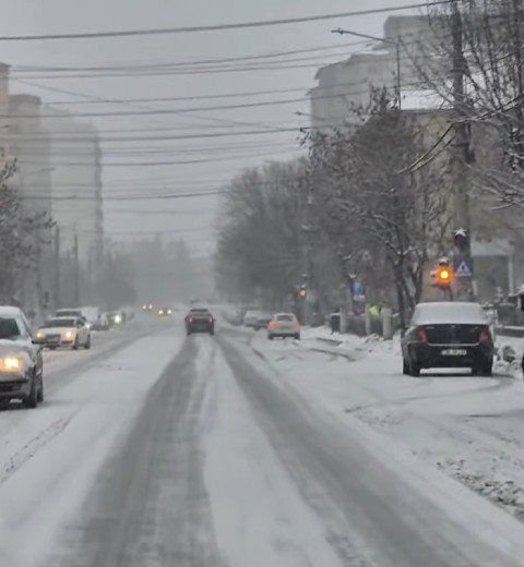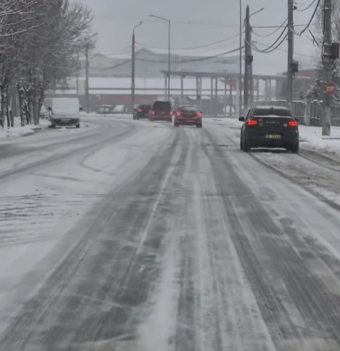 La această oră, ninsoarea acoperă orașul, iar carosabilul poate deveni rapid alunecos.