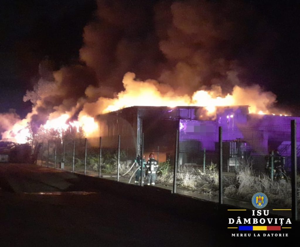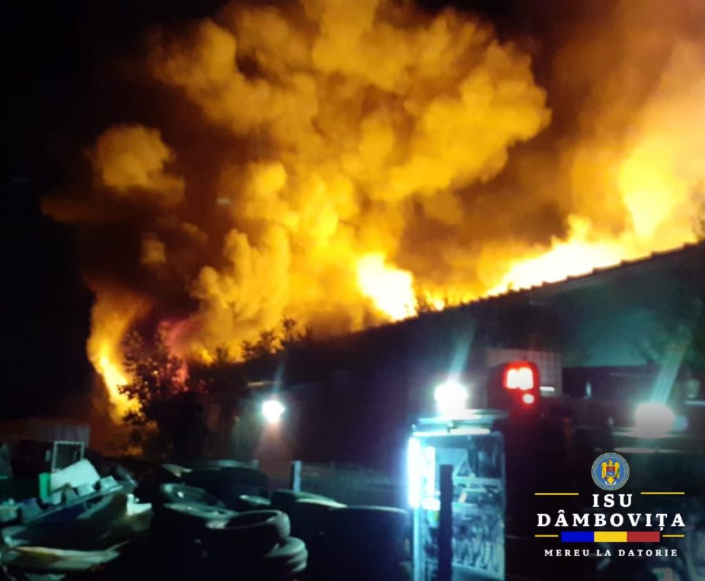 Noaptea trecută,INCENDIU PUTERNIC la Crevedia,la sosirea echipajelor de intervenție, incendiul se manifesta cu flacără deschisă și degajări de fum pe o suprafață de aproximativ 1.000 mp.