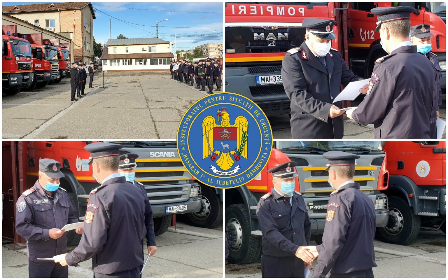 La sediul inspectoratului a fost organizată festivitatea de trecere în rezervă, cu drept de pensie, a patru subofițeri din cadrul ISU „Basarab I” Dâmboviţa:- plutonier adjutant șef LIȚĂ Constantin – Detașamentul de Pompieri Târgoviște; – plutonier adjutant șef FLOREA Victor – Detașamentul de Pompieri Târgoviște; – plutonier adjutant șef CACIAMAC Georgel – Detașamentul de Pompieri Târgoviște; – plutonier adjutant șef STAN Dan – Detașamentul de Pompieri Titu.