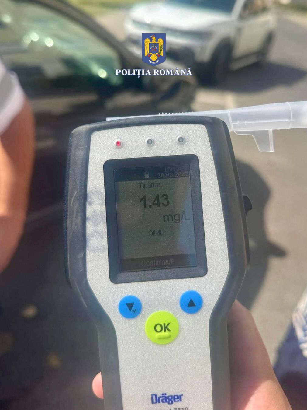 Testarea acestuia a arătat o valoare de 1,43 mg/l alcool pur în aerul expirat. Ulterior, șoferul a fost condus la unitatea medicală pentru prelevarea de mostre biologice necesare stabilirii gradului de îmbibație alcoolică.