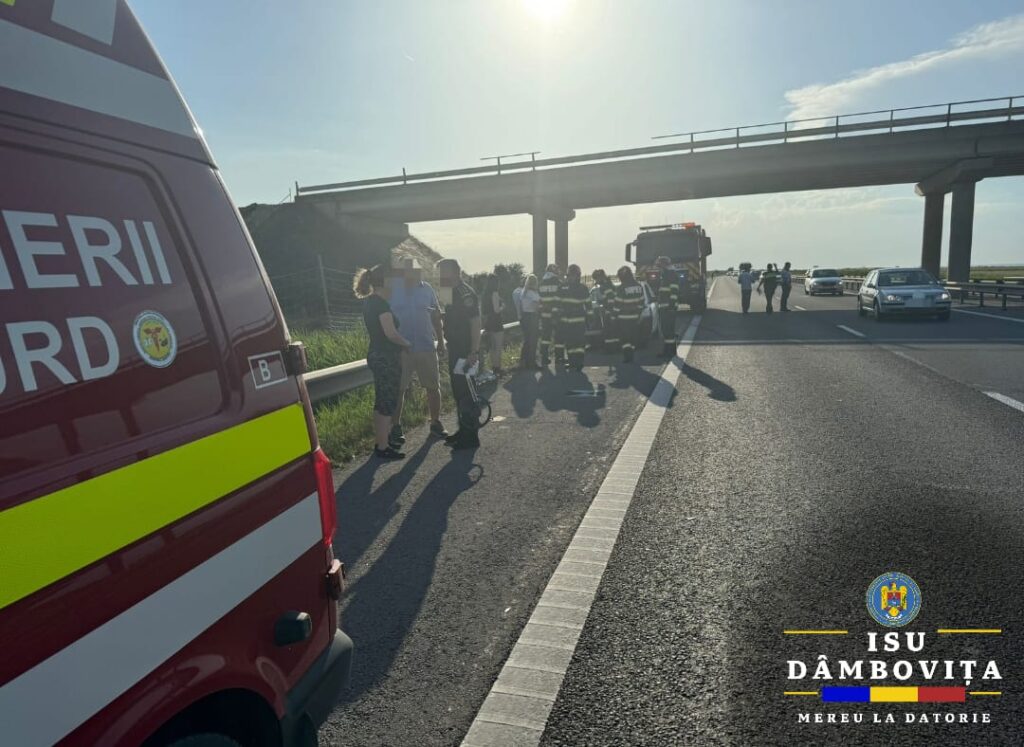 Pompierii dâmbovițeni au intervenit  la un accident  pe A1, la kilometrul 75, în direcția către București, în localitatea Petrești.