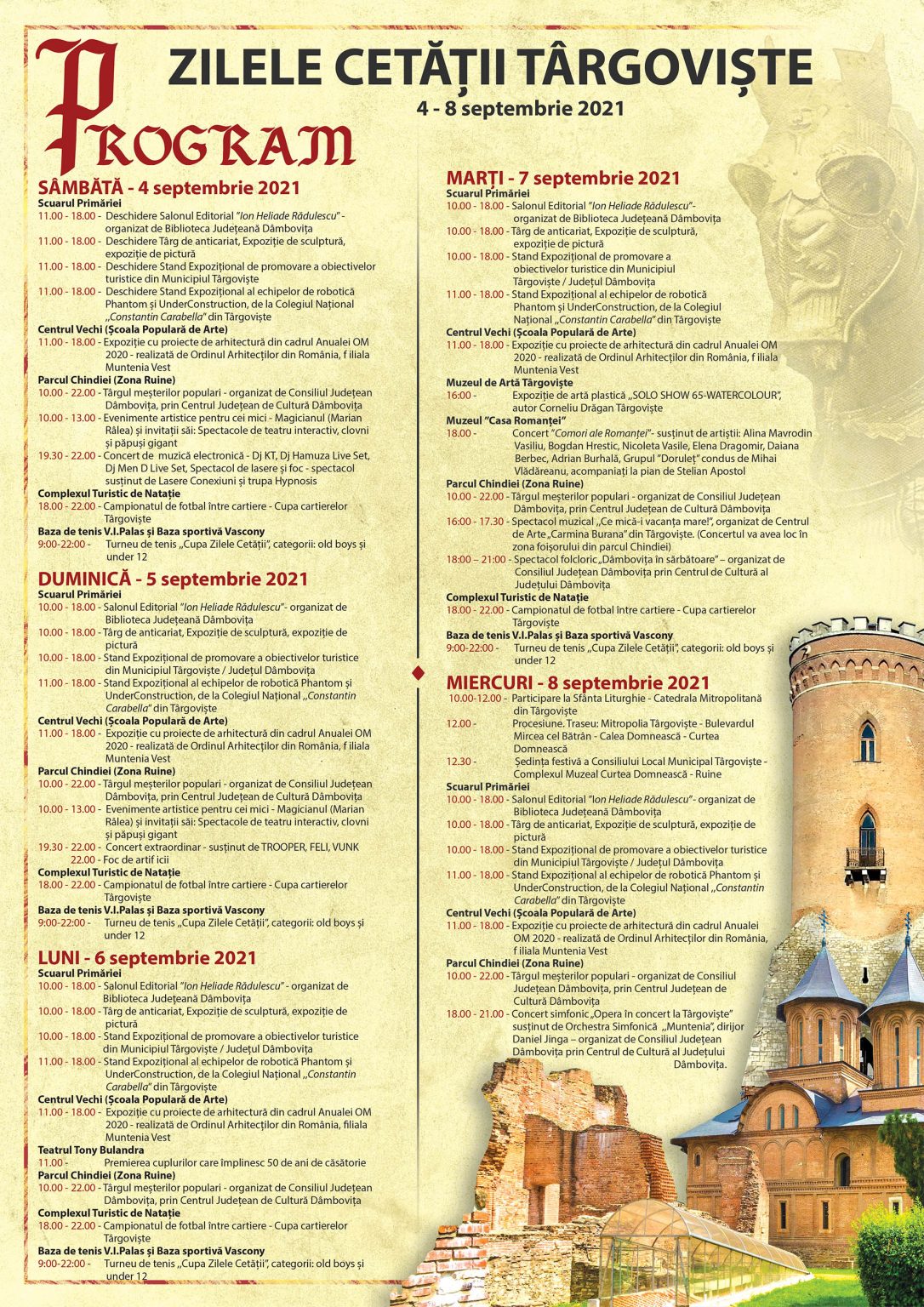 PROGRAM ZILELE CETĂȚII Târgoviște,4 – 8 septembrie 2021