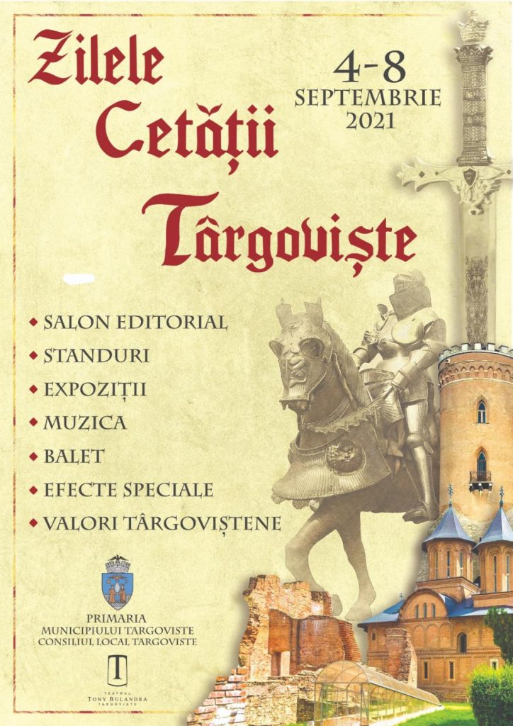 Pe parcursul a patru zile, au loc ZILELE CETĂȚII Târgoviște,4 – 8 septembrie 2021, Primăria Târgoviște prin Teatrul Tony Bulandra,dar și în parteneriat cu CJ Dâmbovița, a pregătit o serie de evenimente.
