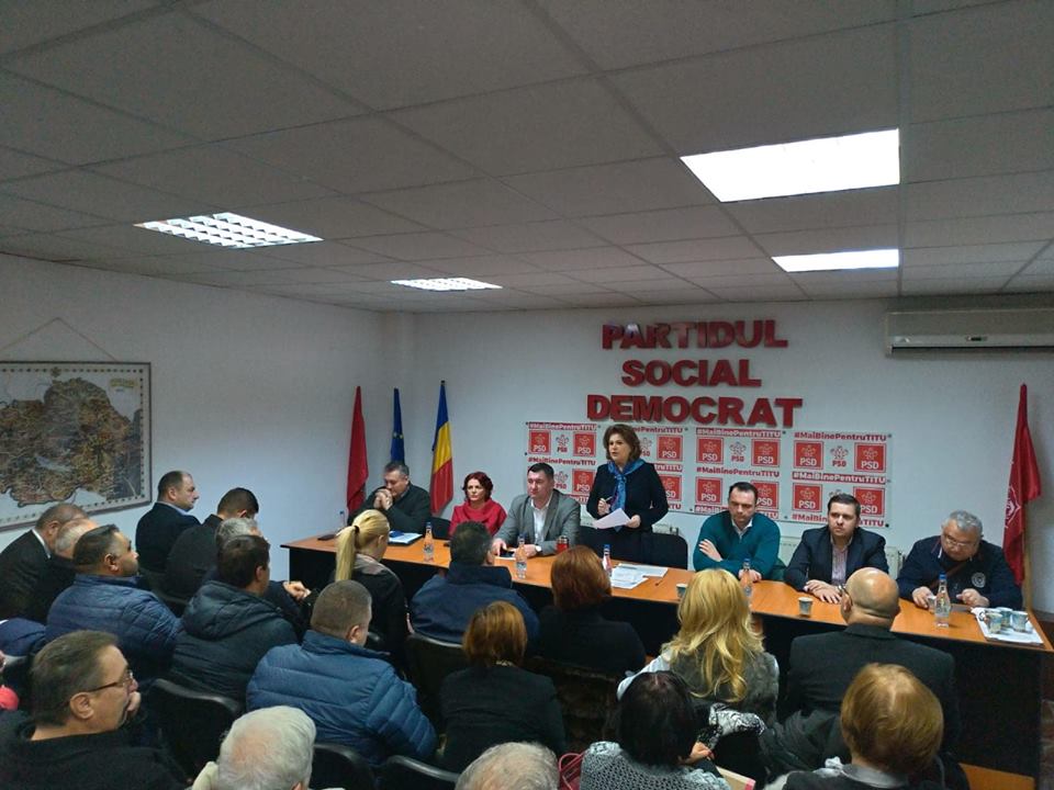 La primele ore ale dimineţii de sâmbătă, la sediul PSD Titu au debutat în forţă întâlnirile de lucru. Lucrările au fost deschise de ministrul Fondurilor Europene, Rovana Plumb, preşedinte interimar al PSD Dâmboviţa .În prezidiu s-au regăsit: deputaţii Claudia Gilia şi Corneliu Ştefan, primarul municipiului Târgovişte, Cristian Stan care este secretarul PSD Dâmboviţa , consilierul judeţean Alexandru Oprea, fost preşedinte CJ Dâmboviţa, consilierul judeţean Sache Neculaescu şi Vlad Oprea, preşedinte PSD Titu.