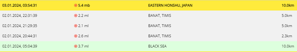 În ziua de 02 Ianuarie 2024 la ora 20:44:31 (ora locală a României) s-a produs în BANAT, TIMIS un cutremur slab cu magnitudinea ml 2.6, la adâncimea de 2.3km.