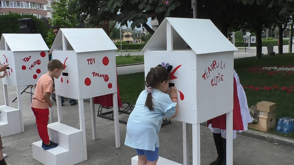 Actorii de la Teatrul Tony Bulandra au pregătit un happening teatral pentru copii.Au fost create trei cutiuțe interesante, asemănătoare unor căsuțe iar distracția a început.