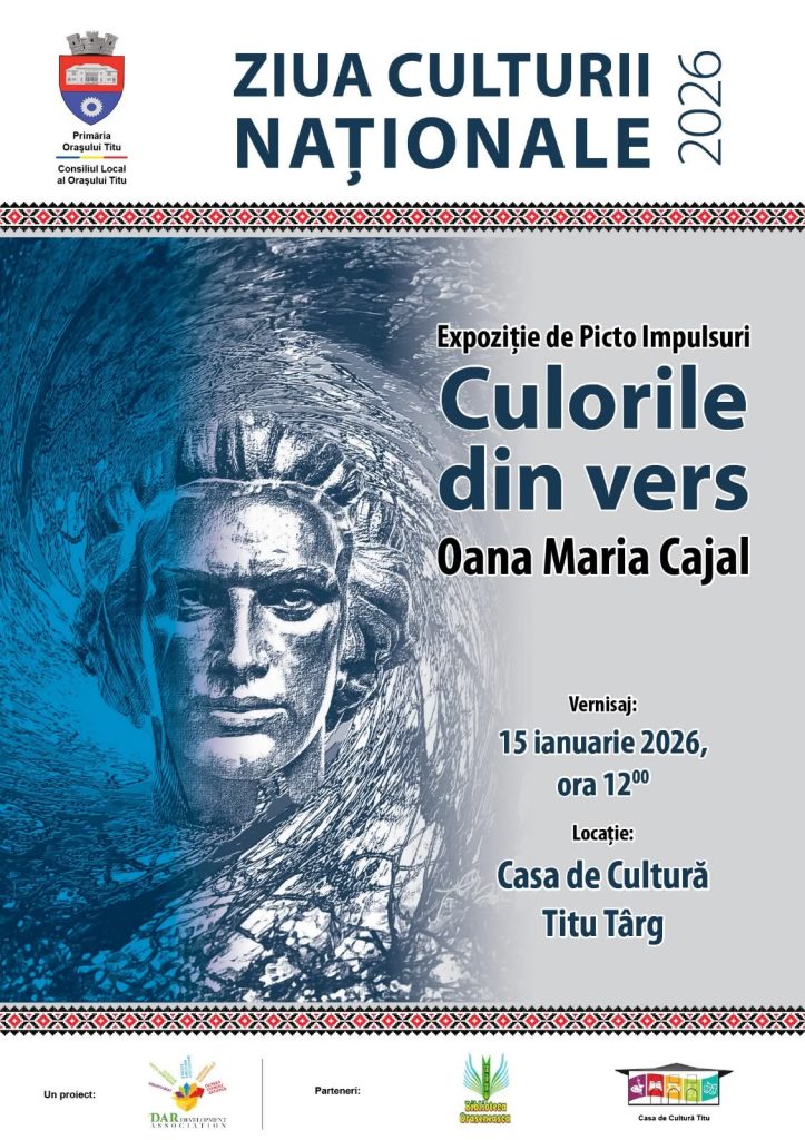 Primăria orașului Titu, împreună cu instituțiile culturale și educaționale din localitate, organizează joi, 15 ianuarie 2026, un simpozion dedicat Zilei Culturii Naționale, prilejuit de 176 de ani de la nașterea lui Mihai Eminescu, geniul poeziei românești. Evenimentul va avea loc la Casa de Cultură din Titu Târg, începând cu ora 12:00.