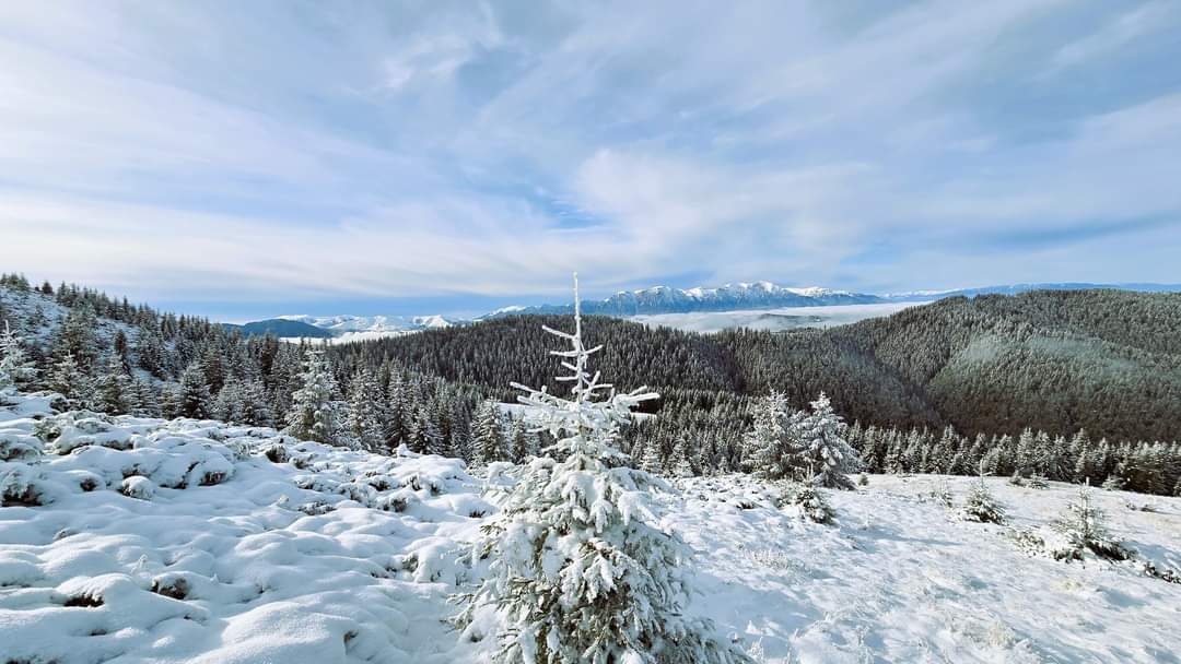 Toamna se retrage încet, iar iarna își face simțită prezența devreme în județul Brașov, acoperind deja crestele munților cu un strat subțire de zăpadă. Imaginile surprinse de Ocolul Silvic Brașov sunt de-a dreptul spectaculoase, oferind o priveliște rară a munților Bucegi, Postăvaru și Piatra Mare, toate învăluite în prima ninsoare a sezonului.