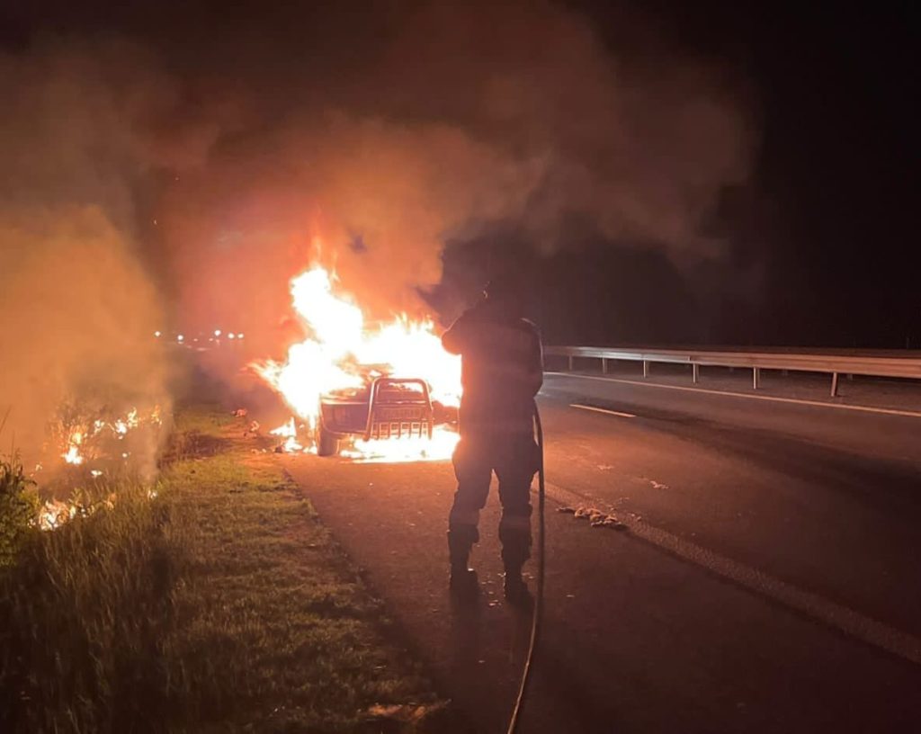 Torță pe roți, noaptea trecută, în jurul orei 22:50, pompierii au fost solicitați să intervină pentru stingerea unui incendiu izbucnit la un autoturism pe A1, km 62, sensul spre București.